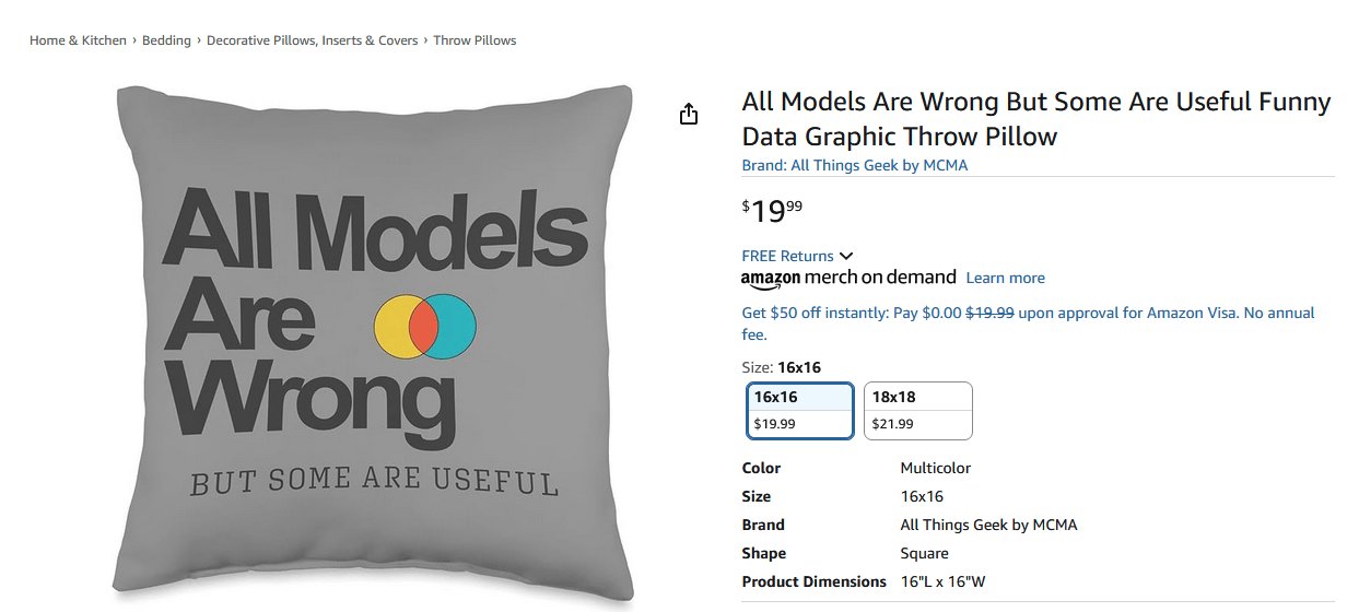 “All models are wrong, but some are useful” is such an old saying in the data analysis world that you can get it on a throw pillow for 20 bucks.
